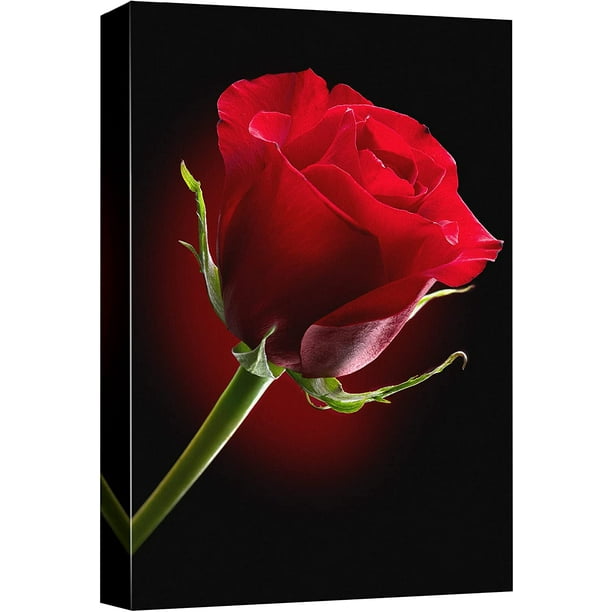Canvas Prints Wall Art Closeup Of Red Rose Flower Against Black Background Modern Wall Decor Home Decoration Stretched Gallery Canvas Wrap Giclee Print Ready To Hang 12 X 18